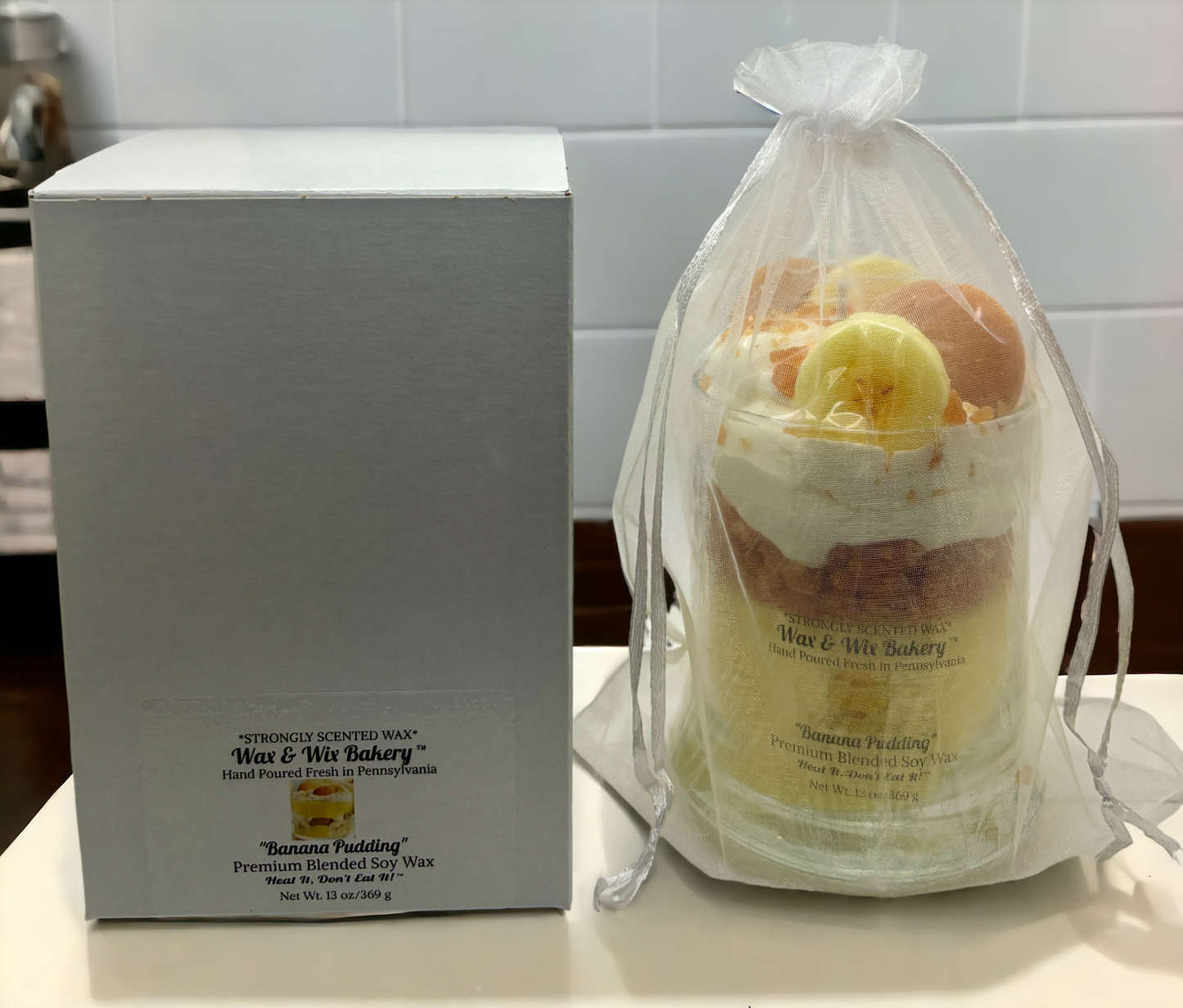 The scent of a banana pudding candle is reminiscent of the classic dessert, offering a delightful combination of sweet, creamy, and fruity aromas. The scent consists of ripe bananas, creamy vanilla pudding, hints of caramelized sugar and buttery undertones.