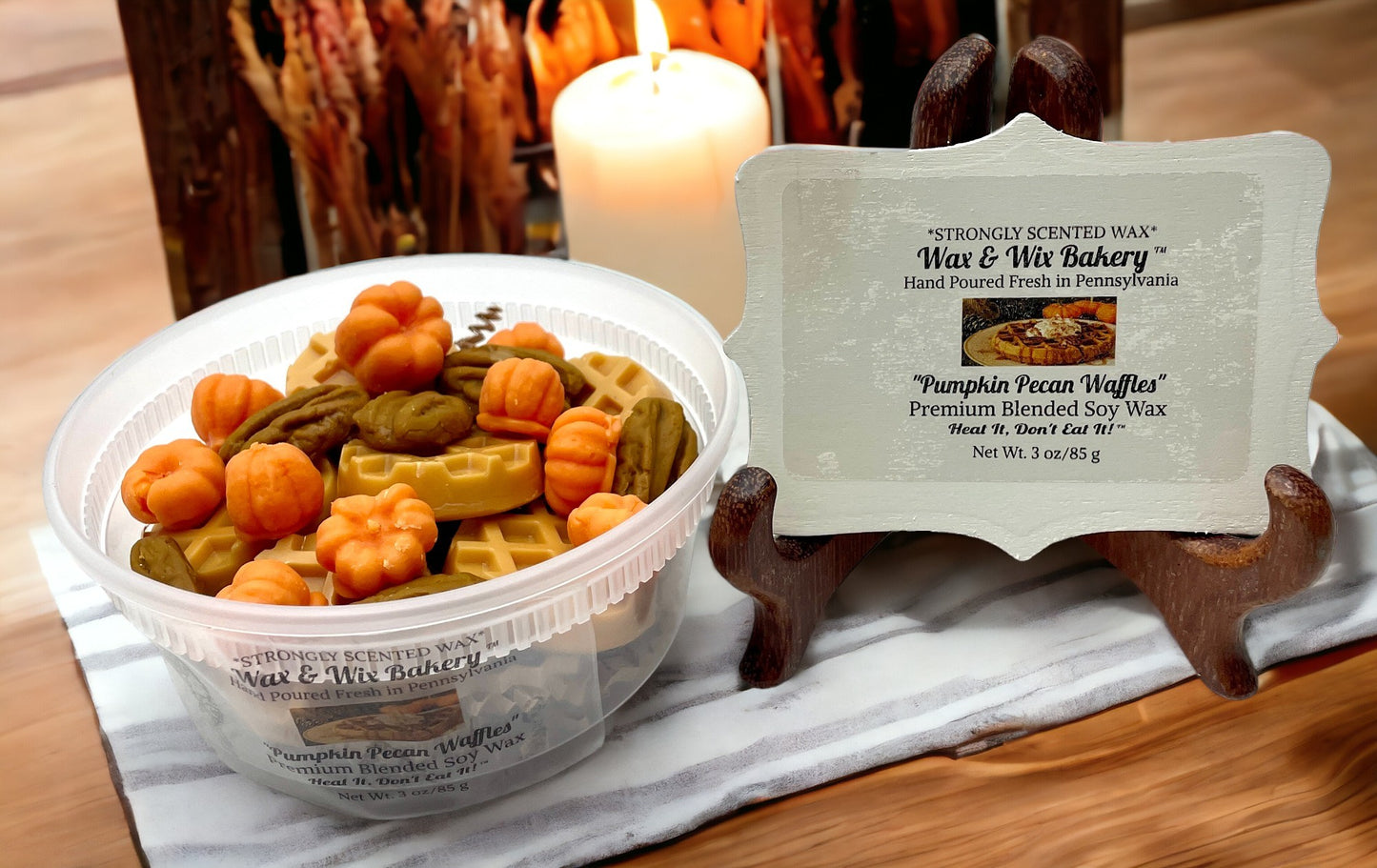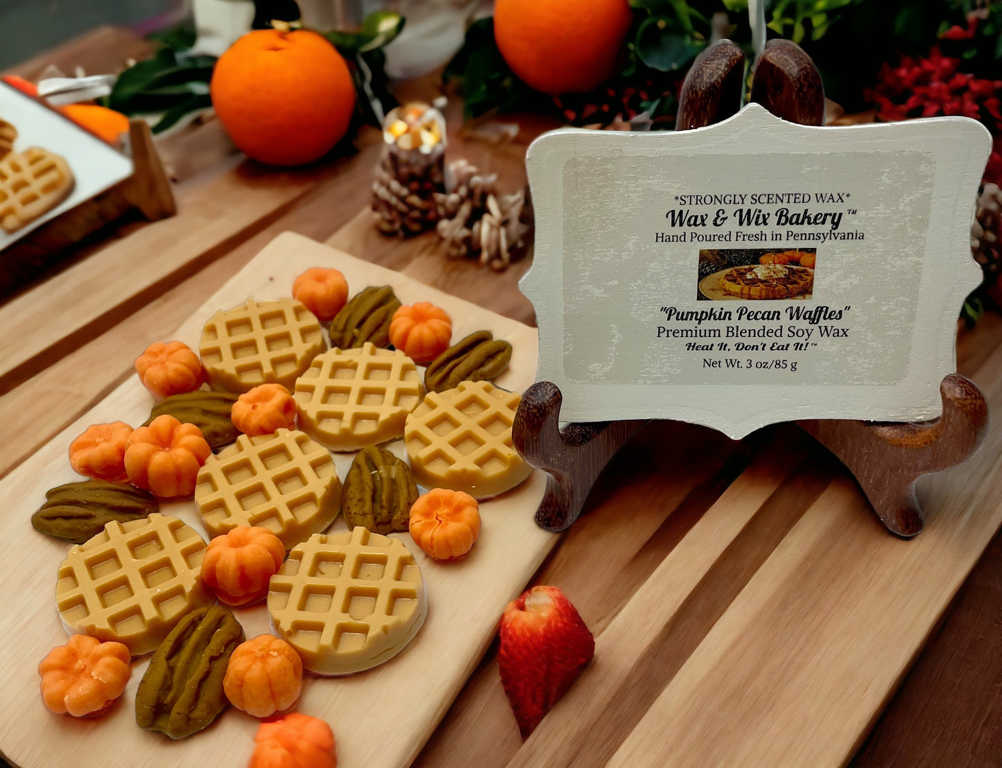 These Pumpkin, Pecan & Waffle wax melts are scented in the fragrance: "Pumpkin Pecan Waffles".