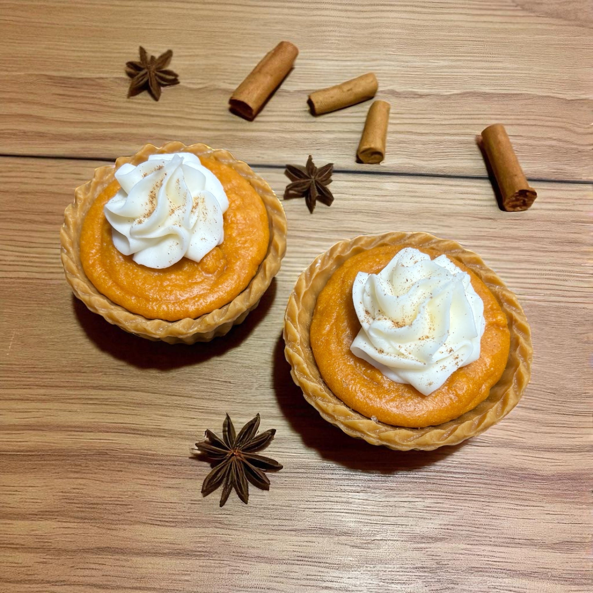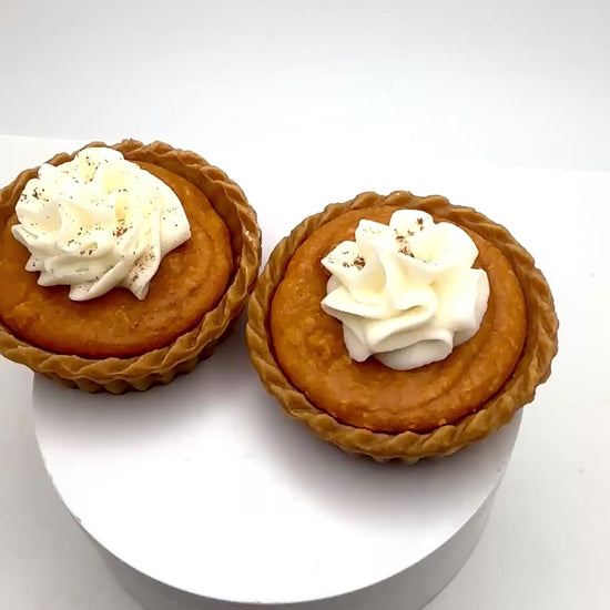 These Mini Spiced Pumpkin Pie Wax Melts are scented in the fragrance: "Spiced Pumpkin Pie”. These Mini Pumpkin Pie Wax Melts mimic a Realistic Pumpkin Pie with a dollop of Whipping Wax and lightly dusted with Pumpkin Spice.