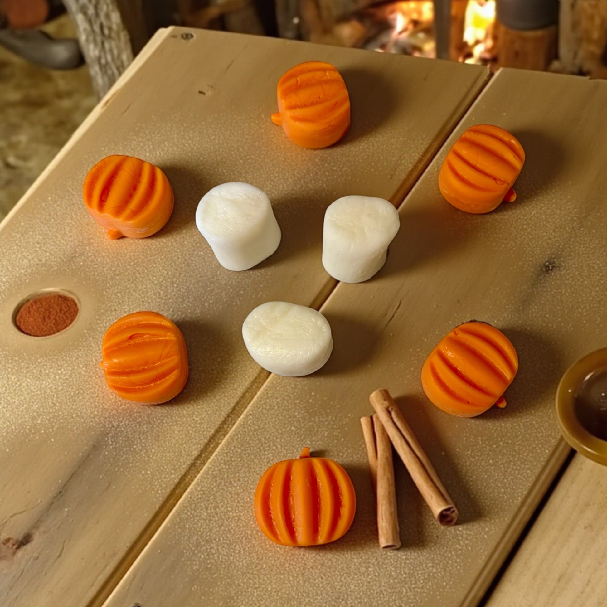 These Pumpkin and Marshmallow Wax Melts are scented in the fragrance: "Vanilla Pumpkin Marshmallow”. These Vanilla Pumpkin Marshmallows Wax Melts are the Perfect Size for all Wax Melters/Warmers. The Marshmallows are a true to size regular Large Marshmallow.